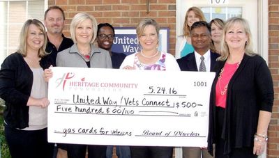 JONESBORO — The Heritage Community Foundation presented a grant last month to United Way officials to benefit local veterans.